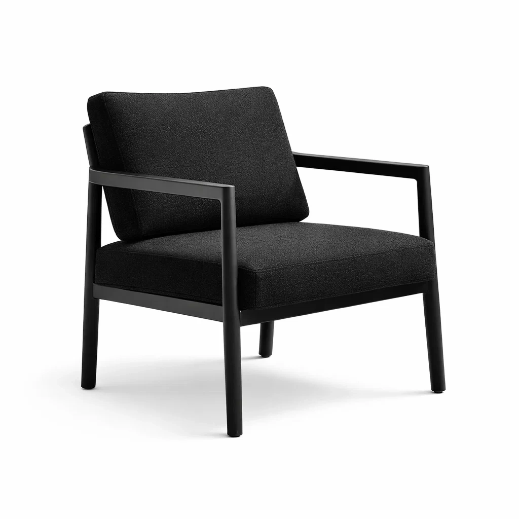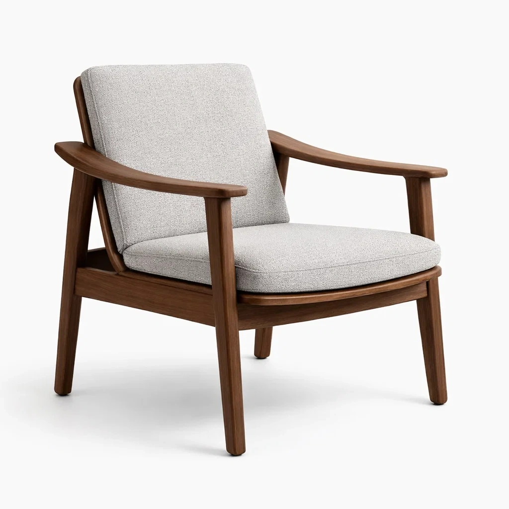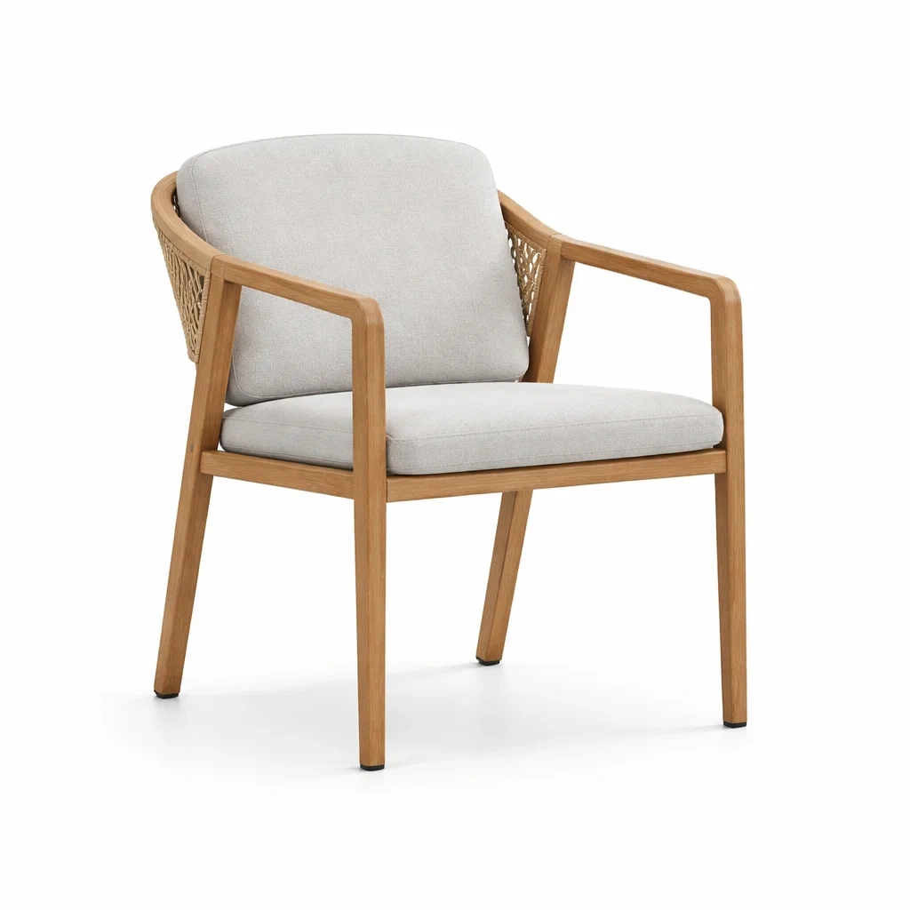 Poltrona in legno di acacia con seduta in poliestere grigia