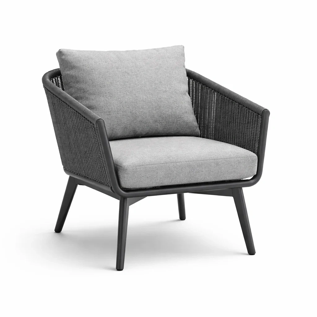 Poltrona da giardino in alluminio e intreccio PE grigio crema