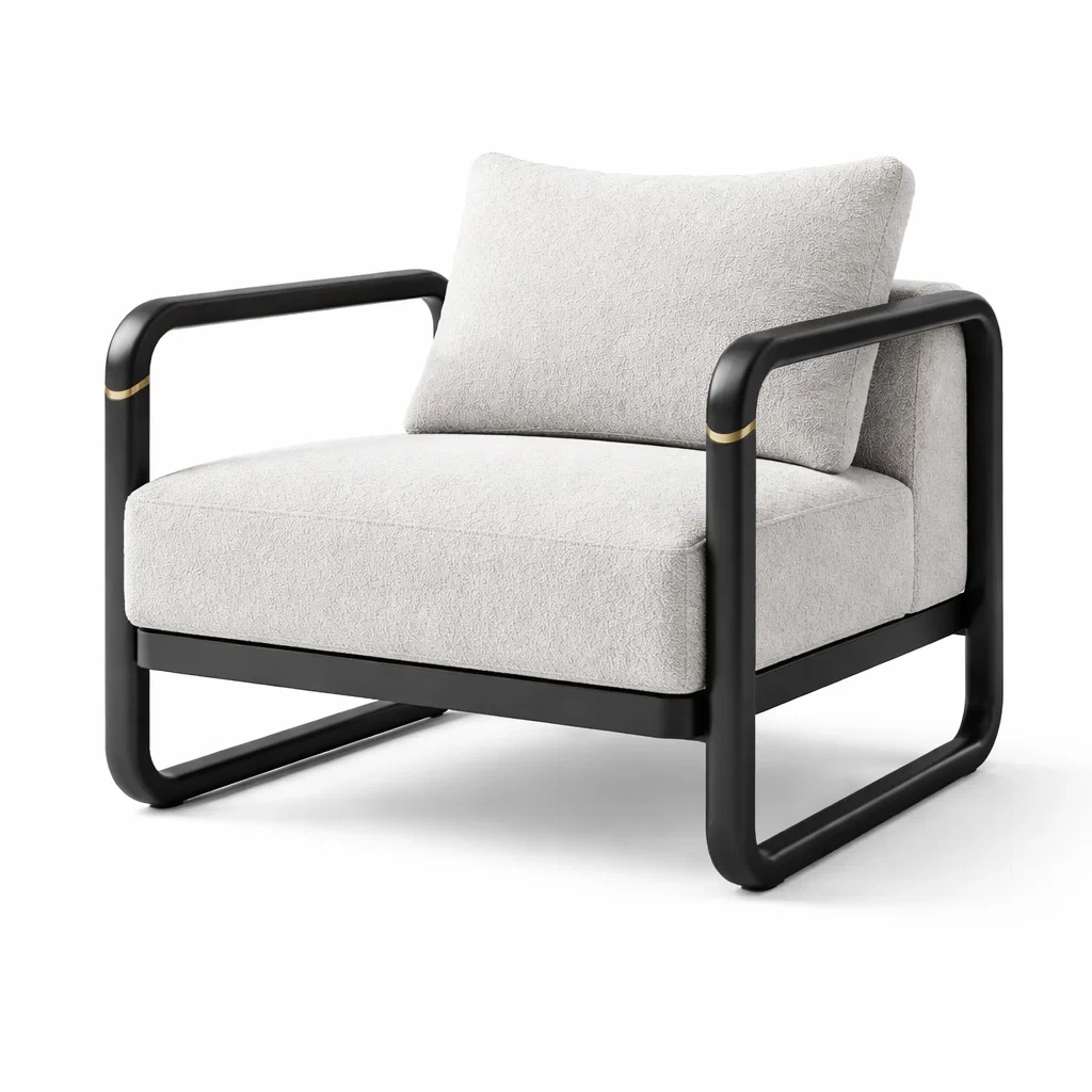 Poltrona in metallo verniciato con cuscini in poliestere grigi