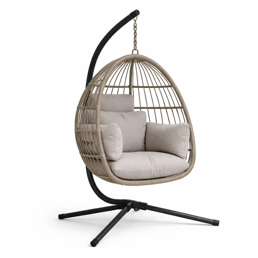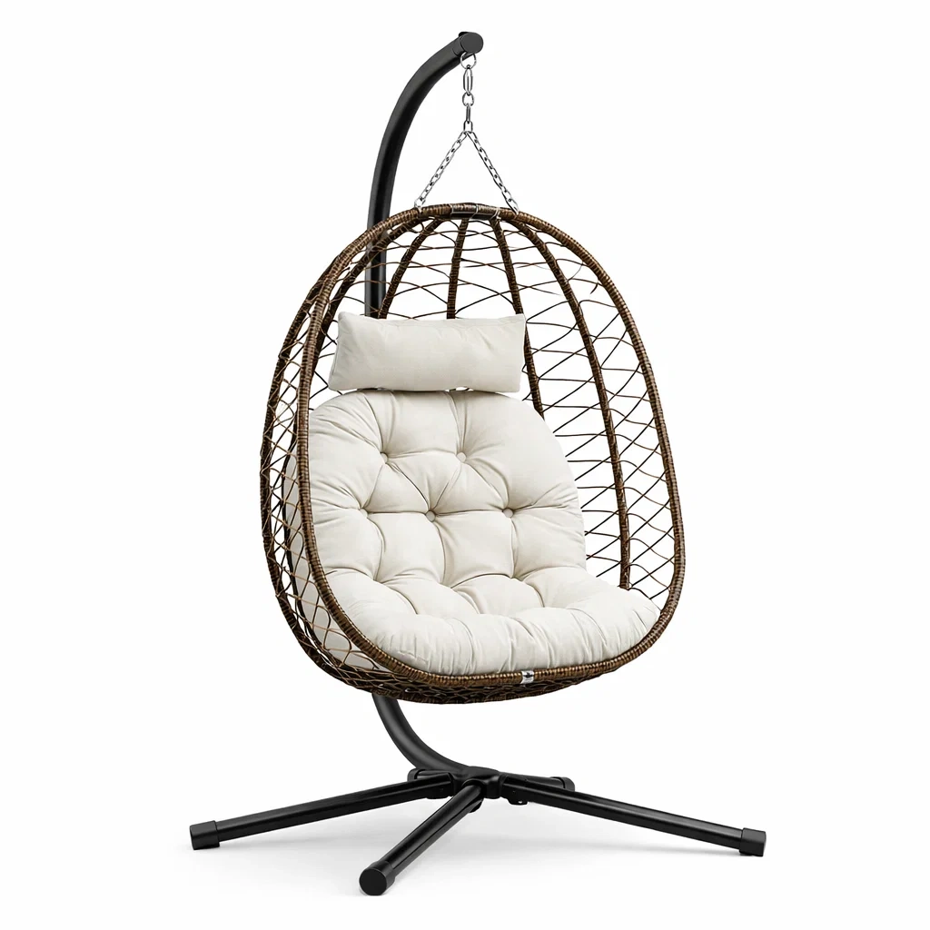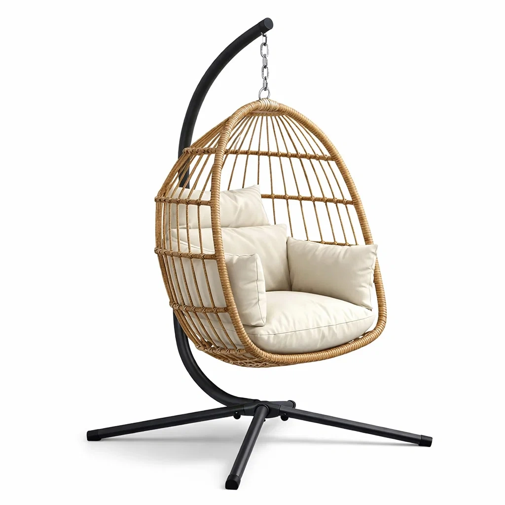 Poltrona sospesa a uovo in rattan sintetico con supporto in acciaio
