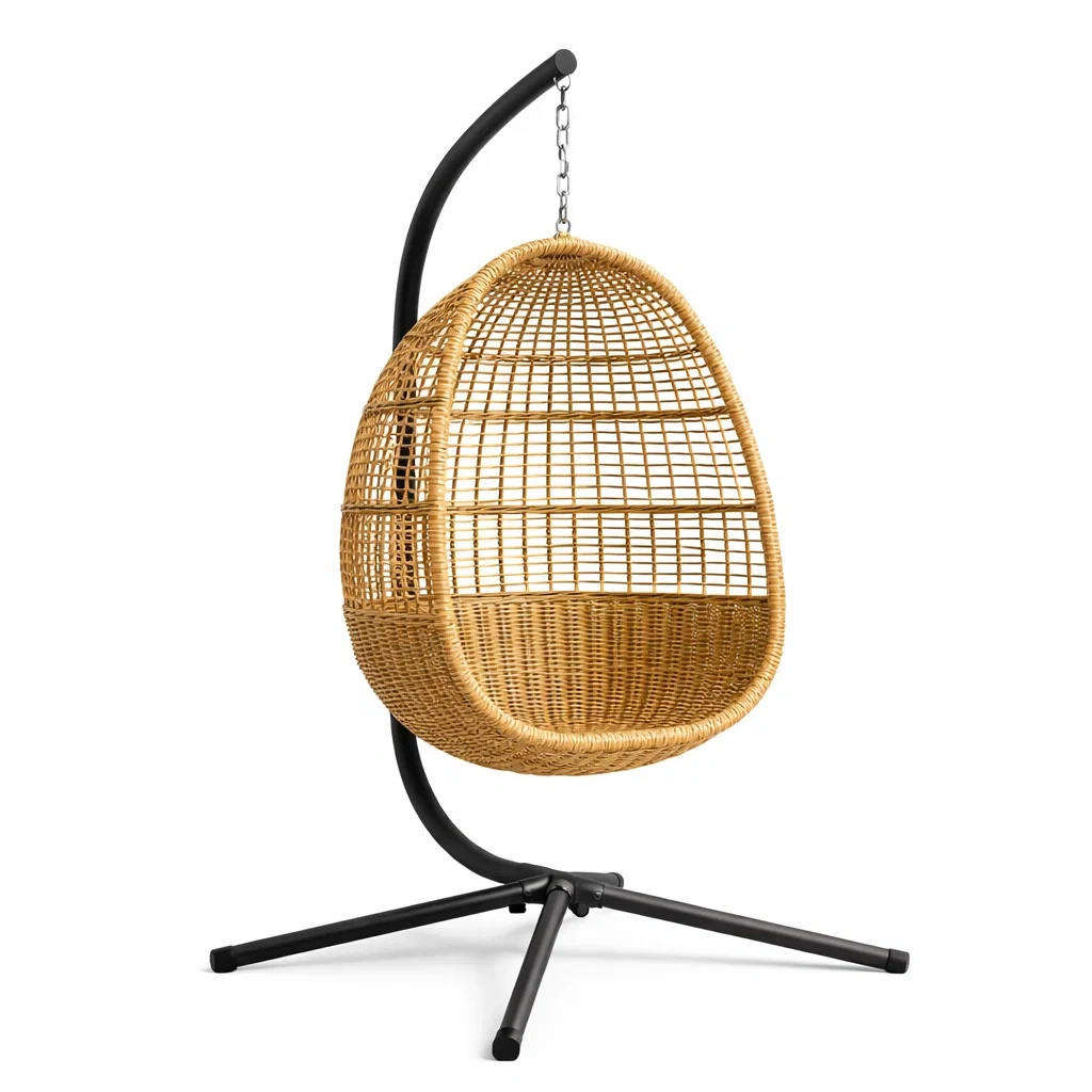 Poltrona sospesa a uovo in rattan con struttura in metallo