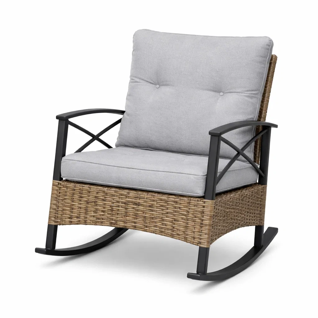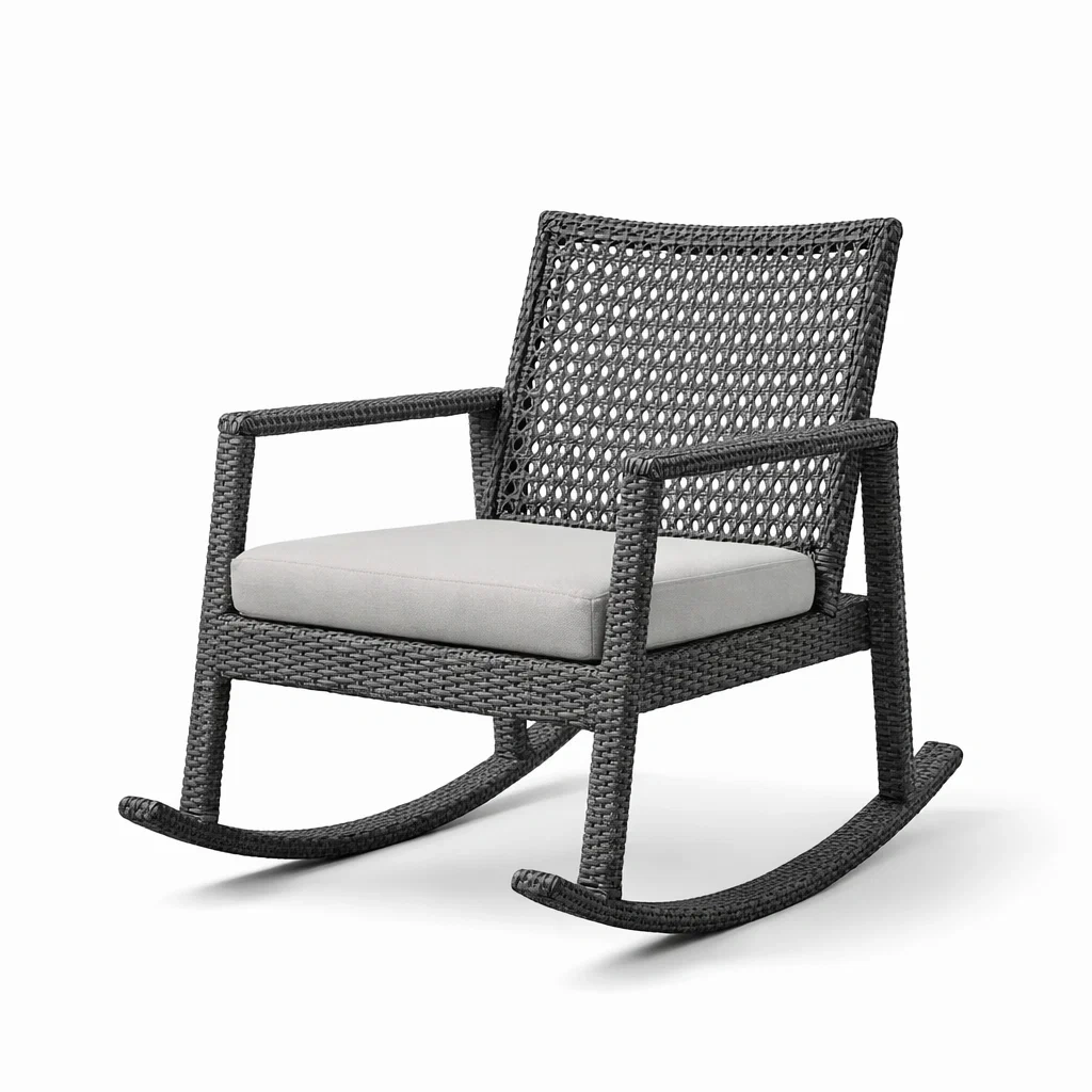 Sedia a dondolo in rattan sintetico grigio