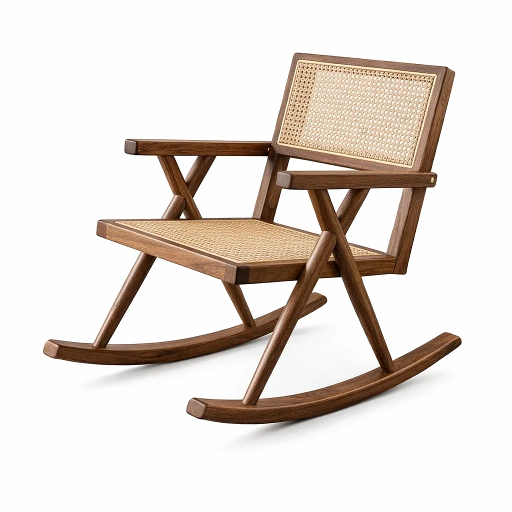 Sedia a dondolo in legno con rattan