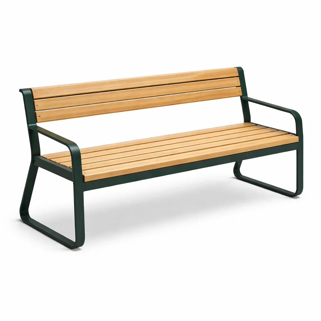 Panchina da giardino in legno di pino e acciaio