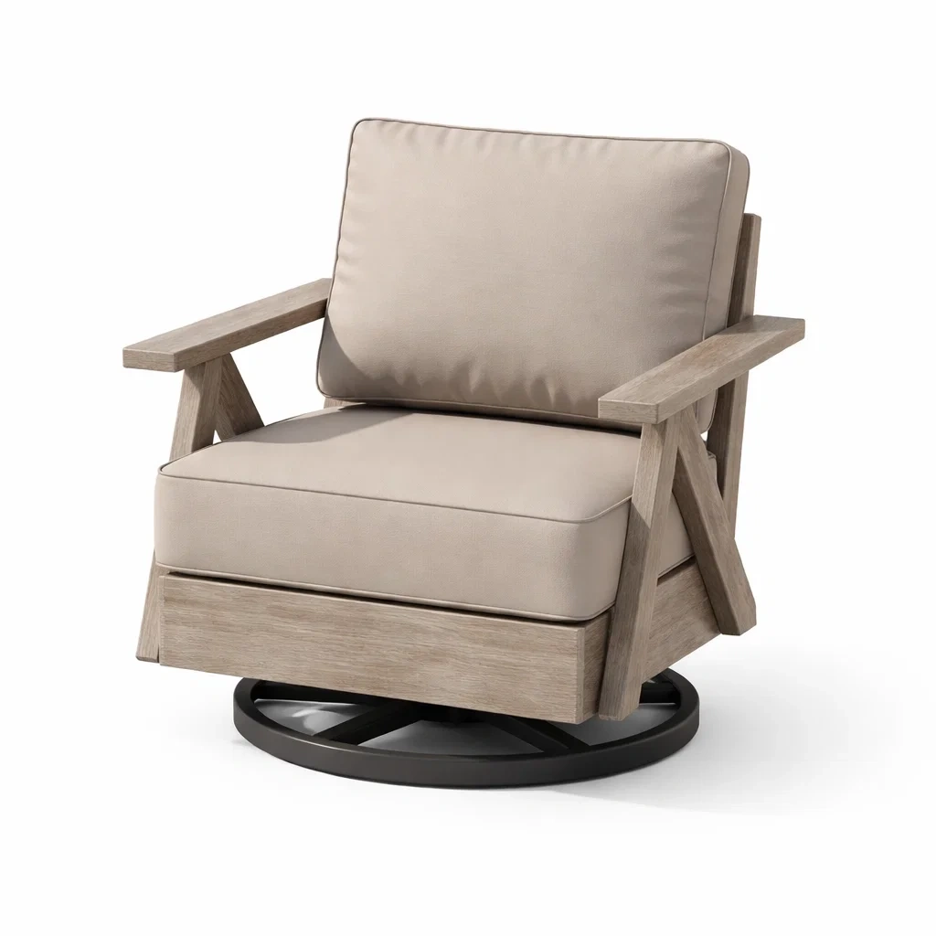 Sedia girevole da esterno in legno e poliestere beige