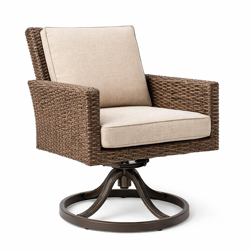 Sedia girevole in rattan sintetico con cuscini beige